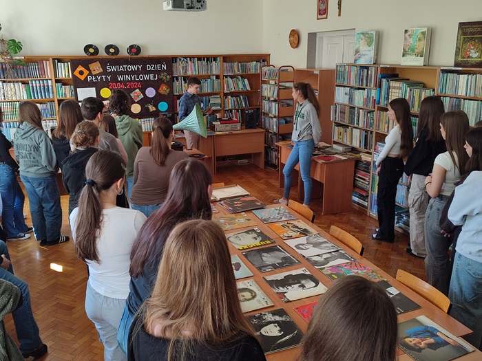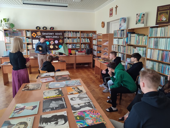 Inicjatorem wydarzenia był uczeń klasy II D Bartosz Kalinowski, pasjonat płyt winylowych i dawnego sprzętu odtwarzającego muzykę. Na piątek (19.04.2024 r.) w czytelni przygotowano okolicznościową gazetkę oraz wystawę gramofonów i płyt gramofonowych. Duże zainteresowanie wzbudzały najstarsze aparaty, pochodzące z pierwszej połowy XX wieku i działające mechanicznie- na korbkę oraz pocztówki dźwiękowe- muzyczne życzenia z epoki PRL-u. Eksponaty pochodziły ze zbiorów biblioteki oraz ze zbiorów prywatnych. Podczas każdej przerwy bibliotekę wypełniała muzyka odtwarzana z płyt winylowych na szkolnym gramofonie. Bartek poświęcił wiele czasu na to, by doprowadzić go do stanu używalności, wymagał bowiem wyczyszczenia i drobnych napraw. Kilka grup uczniów z nauczycielami odwiedziło również czytelnię podczas lekcji.