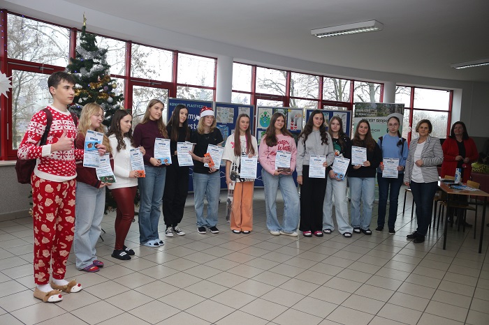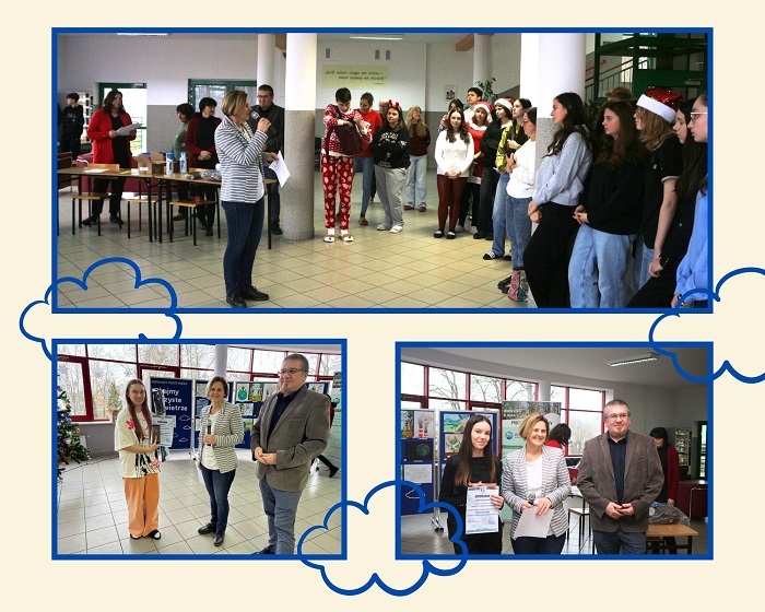 Podsumowanie konkursu „Dbajmy o czyste powietrze”, wraz z rozdaniem dyplomów i nagród jego uczestnikom, miało miejsce 4 grudnia 2024 r. na auli. Dyrektor Bożena Krzyżanowska podziękowała młodzieży za udział w konkursie, pogratulowała wszystkim talentu i pomysłowości oraz wręczyła wszystkim dyplomy, a zwycięzcom nagrody zakupione ze środków przyznanych w ramach realizowanego projektu. Wydarzenie stało się także okazją do podsumowania dotychczasowych działań realizowanych w ramach przedsięwzięcia “Czyste powietrze – LoKen jesteśmy na TAK!”.