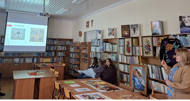 Za nami pierwsze spotkanie z cyklu „My i nasze zainteresowania”. W poniedziałek 7 października o tym, co robi w wolnym czasie opowiedziała nauczycielka matematyki pani Małgorzata Kościaniuk oraz nauczycielka biblioteki pani Ewa Boguszewska. Panią Małgorzatę Kościaniuk od dzieciństwa pasjonują robótki ręczne- haft krzyżykowy, szydełkowanie i robienie na drutach. Niesamowite efekty jej pracy uczestnicy spotkania mogli obejrzeć na prezentacji i na żywo.