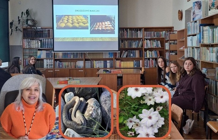Pani Grzymkowska natomiast, jak przystało na bibliotekarza, nie wyobraża sobie życia bez książek. W wolnych chwilach uwielbia czytać, ale także pracować w ogrodzie i obserwować przyrodę. Przy okazji robi tysiące zdjęć:). Niektóre z nich uczestnicy spotkania mogli zobaczyć na przygotowanej prezentacji.